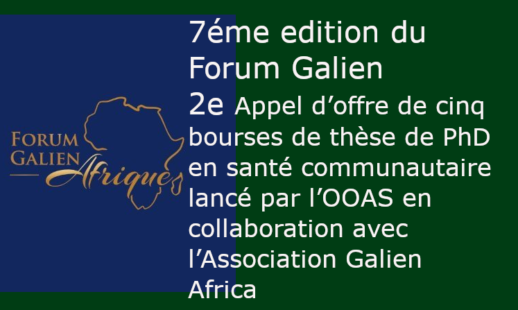 7ème édition du Forum Galien et 2ème Appel d’offre de cinq bourses de thèse de PhD en santé communautaire lancé par L’OOAS en collaboration avec l’Association Galien Africa
