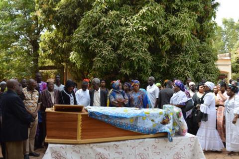 The final tribute before interment at the Bobo municipal cemetery took place at the forecourt of the Department for the Development of Human Resources in Health, where Clémentine Sanon worked for more than 15 years, as Departmental Secretary.